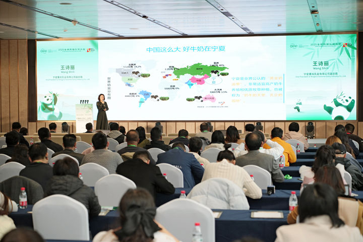 “中國這麼大,好牛奶在寧夏。”王詩麗在發言中介紹,寧夏地處北緯38°黃金奶源帶,得天獨厚的自然條件孕育了優質奶源。2024年,全區奶牛存欄達88.5萬頭,生鮮乳總産量457萬噸,生鮮乳抽檢合格率更是連續十五年保持100%,多項指標達到歐盟標準,被譽為全國奶業優質安全發展的旗幟。