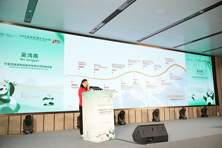 寧夏百瑞源枸杞股份有限公司招商總監吳鴻燕作企業推介。