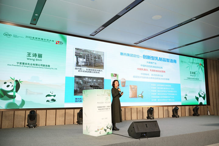 寧夏塞尚乳業有限公司副總裁王詩麗作企業推介。