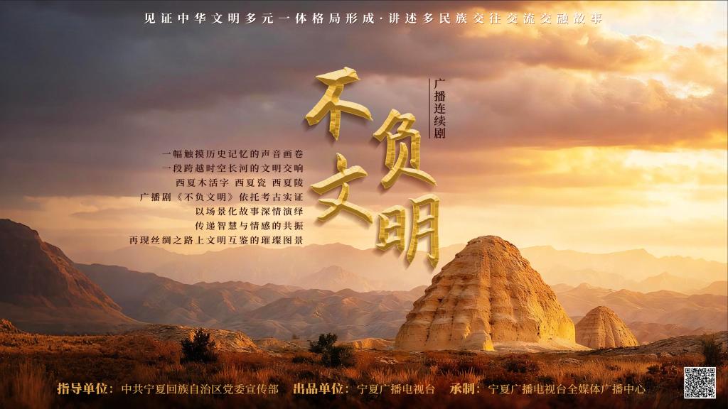 廣播連續劇《不負文明》聚焦“西夏木活字”“西夏瓷”“西夏陵”三大具有代表性的文物遺存,從技術傳播、器物融合與歷史認同三個維度,以具象化的故事闡明“中華文明多元一體”的歷史必然性與文化延續性。該劇創新採用雙線並進手法。主線以當代學者陳志珩、馬茹飛等參加巴黎國際印刷史研討會,實證中國活字印刷起源為切入,通過嚴謹的史學考證與文物實證,向世界展示了中國12世紀已成熟的活字印刷實物——西夏文《吉祥遍至口和本續》。這是世界上現存最早的木活字印刷實證,有力佐證了活字技術起源於中國的事實。副線則以西夏時期刻字司頭監孫小乙與阿依夏的情感故事為紐帶,生動串聯起木活字印刷與瓷窯技術創新等重大歷史場景,通過人物命運軌跡,結合西夏曆史研究成果,藝術性地講述多民族交往交流交融故事。
