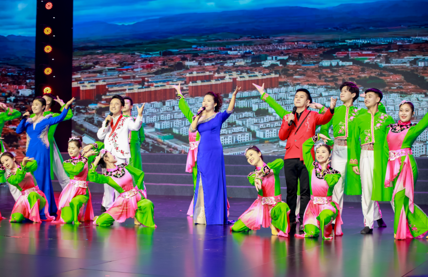 由中寧縣大戰場農民合唱團演繹的合唱情景表演《我們的故事,我們的歌》,將移民群眾的奮鬥歷程與移風易俗實踐深度融合。作為曾登上全國文明鄉風大會壓軸舞&的農民團體,團員們以親身經歷為藍本,通過《逐夢大戰場》《紅彤彤的日子》等篇章,生動再現了從西海固移民到黃河岸邊後,在黨和政府的帶領下實現産業豐收、生活富足的同時,主動摒棄高額彩禮、踐行婚事新辦的文明轉變,既展現了新時代農民的精神風貌,更印證了中衛市移風易俗工作在基層的深刻影響力。