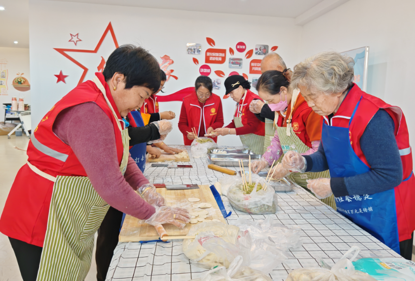 西湖社區上元名城小區“鄰里驛家”裏,工作人員貼心準備了牛肉青蘿蔔、羊肉胡蘿蔔等多種餡料及包餃子工具。居民們踴躍參與,分工協作,歡聲笑語縈繞大廳。當熱氣騰騰的餃子端上桌,大家圍坐品嘗,真切感受社區大家庭的溫暖。