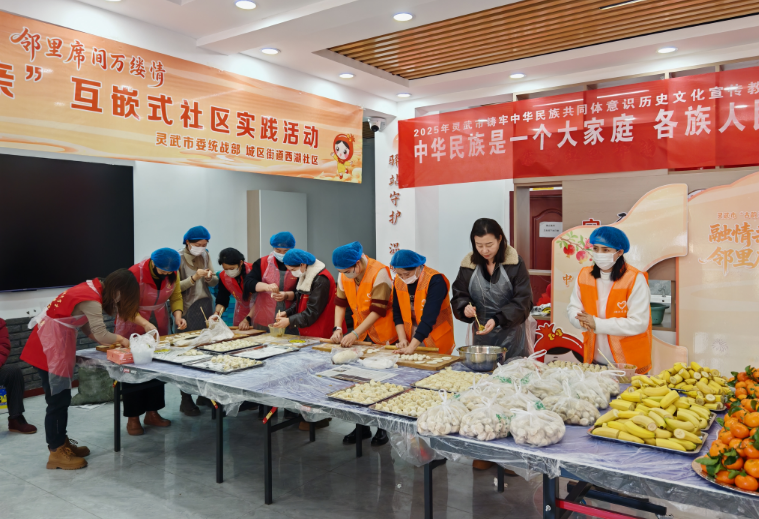 為鑄牢中華民族共同體意識,增進各民族群眾情感交流,12月8日,靈武市委統戰部聯合城區街道水木靈州社區、西湖社區、西平路社區,開展“古韻靈州一家親”互嵌式社區實踐活動。活動以包餃子、文藝展演、理論宣講等群眾喜聞樂見的形式,讓各民族群眾在溫馨互動中拉近距離、凝聚共識,繪就民族團結同心圓。
