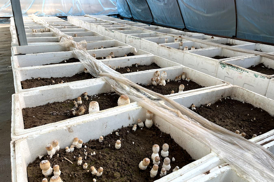“保溫箱、菌料、技術都是合作社提供的。我只需負責控溫、噴水、採光,活不重,適合我們老年人。”楊甘寧介紹説,今年他家種植的70箱雞腿菇,每箱産量約有10斤,按目前每斤不低於7元的批發價計算,收益較往年種植平菇大幅提高。