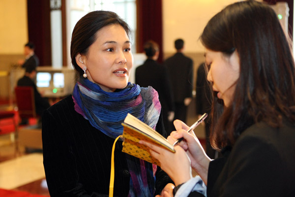 3月3日,參加政協會議的邱麗霞接受記者採訪。新華網/中國政府網 記者楊理光攝