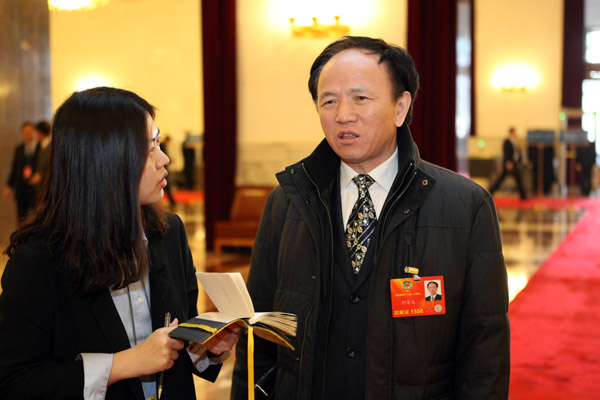 3月3日,何崇元委員接受記者採訪。新華網/中國政府網 記者楊理光攝