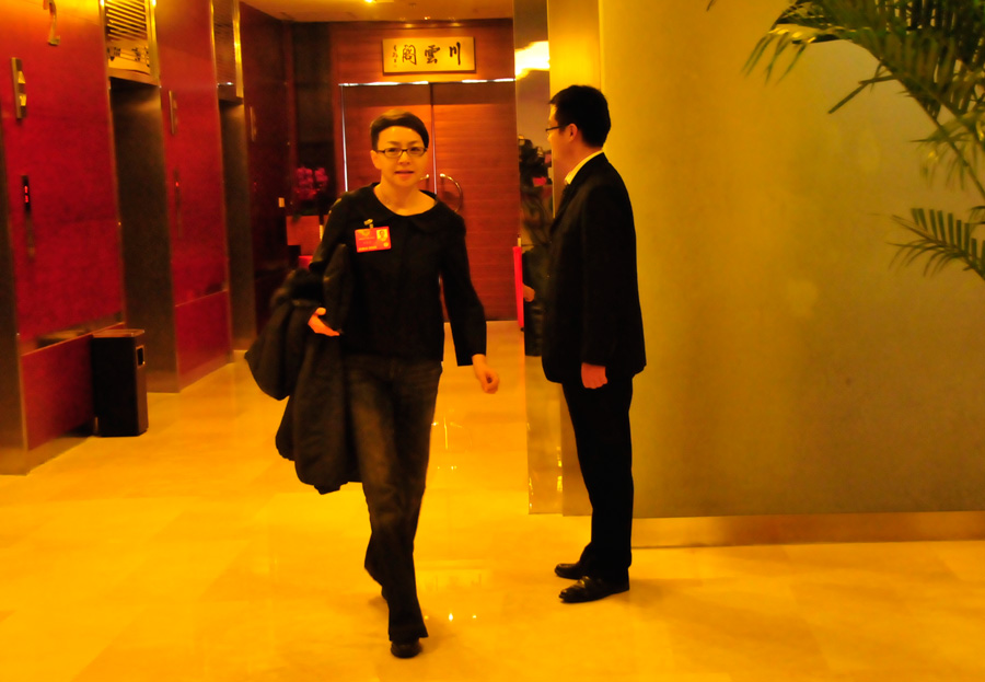 在北京鐵道大廈進行分組討論。宋丹丹正步入會場。