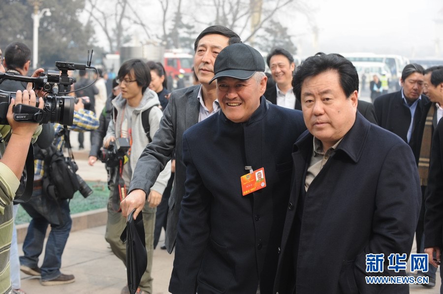 3月11日下午3時,全國政協十二屆一次會議在人民大會堂舉行第四次全體會議,選舉政協第十二屆全國委員會主席、副主席、秘書長、常務委員。出席會議的政協委員中那些“明星臉”永遠是最吸引記者鏡頭的一個群體。圖為趙本山與徐沛東在交談。新華網 陳競超 攝