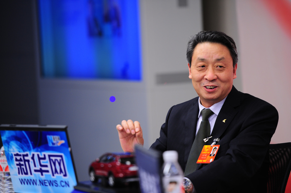 2013年3月12日,全國人大代表、河南義馬煤業集團黨委書記、董事長武予魯做客網兩會訪談。新華網 李欣 攝
