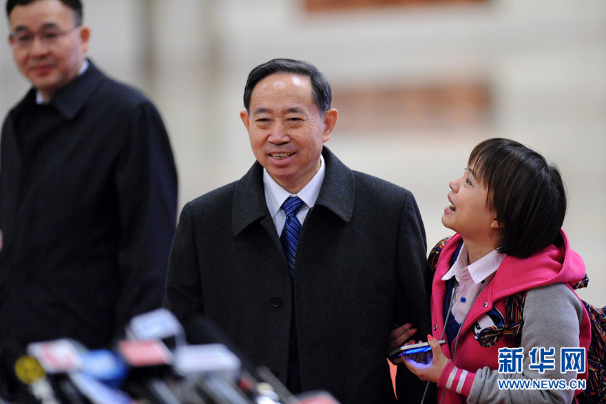 3月15日上午9時,十二屆全國人大一次會議在人民大會堂舉行第五次全體會議,決定國務院總理的人選;決定中華人民共和國中央軍事委員會副主席、委員的人選;選舉最高人民法院院長;選舉最高人民檢察院檢察長。會前,教育部長袁貴仁笑對採訪。 新華網/中國政府網 陳競超 攝