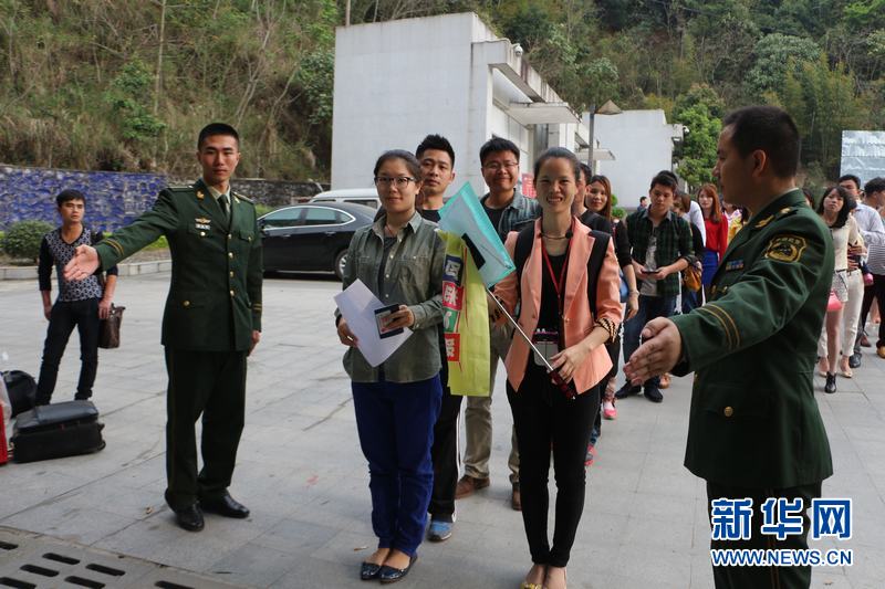 邊檢官兵引導參加廟會的旅客進入通關口岸