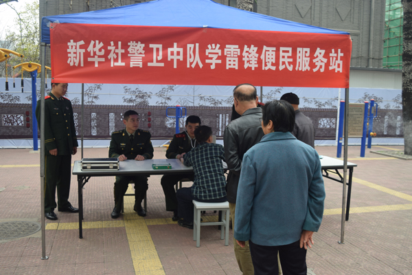新華網消息:4月11日下午,新華社警衛連全體官兵在中隊黨支部的帶領組織下,開展“學雷鋒”便民服務活動。