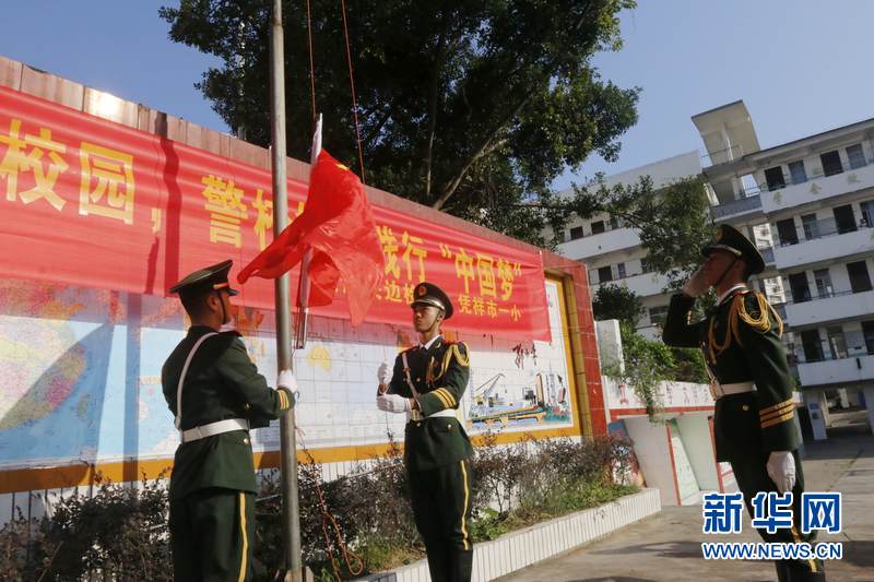 廣西友誼關國旗護衛隊走進校園升國旗慶“六一”
