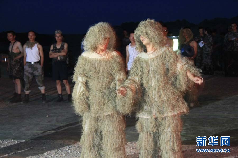 篝火晚會上,戰士們表演的“另類服裝秀”。韓松豫 攝