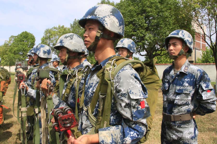 等待進行傘降訓練的戰士。韓松豫攝