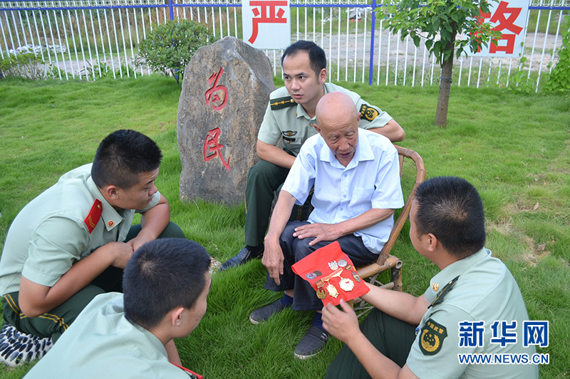 邊防官兵與老兵交談