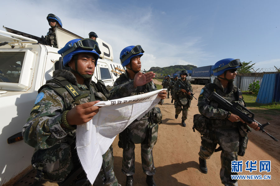 中國維和步兵營教導員楊釗正在朱巴市帶隊進行城區巡邏路線勘察。孫江超攝