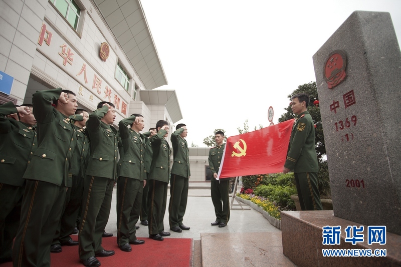 東興邊檢站黨員檢查員在界碑前重溫入黨誓詞