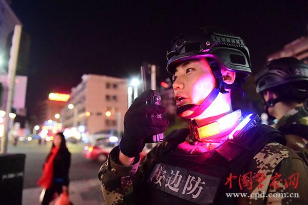 邊防官兵正在深圳東門步行街巡邏執勤。