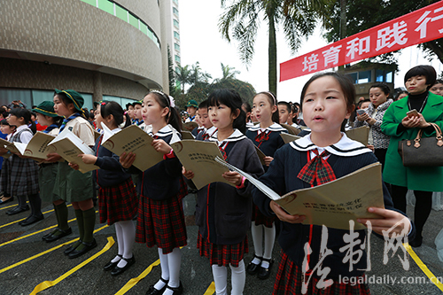 圖為活動現場,深港兩地小學生在誦讀經典《少年中國説》