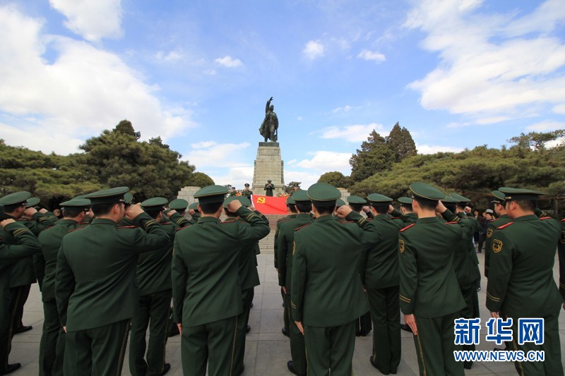 遼寧邊防總隊錦州邊防支隊和錦州邊檢站的50余名官兵日前來到遼沈戰役紀念館,開展清明掃墓紀念活動。活動中,官兵在紀念碑前重溫入黨誓詞,誓做黨和人民的忠誠衛士。(蘇海宇)