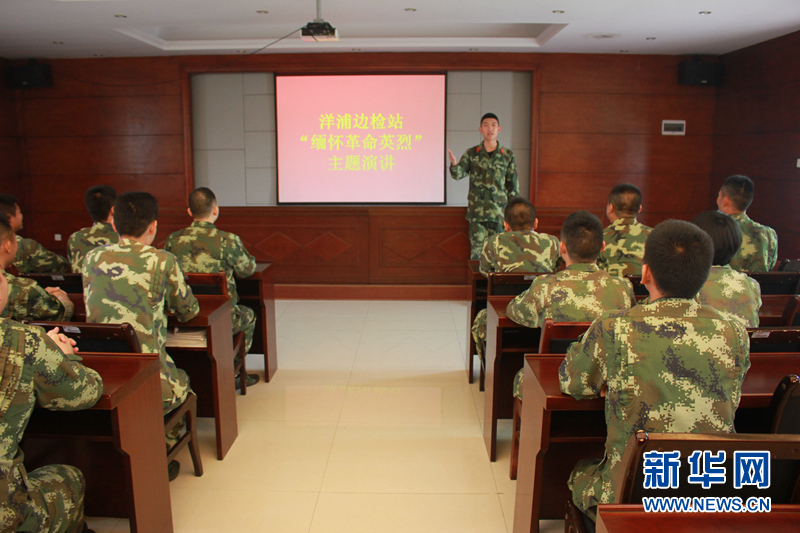 海南邊防總隊洋浦邊檢站在清明節來臨之際,開展“緬懷革命先烈,爭當忠誠衛士”主題紀念活動,期間,這個站官兵以英烈事跡為內容展開演講,寄託對先烈崇敬感懷之情。(張錦原)