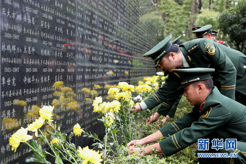 清明節前夕,貴州邊防總隊官兵來到貴州公安英烈紀念墻前開展緬懷英烈活動。脫帽默哀,向英烈敬獻菊花以表哀思,重溫人民警察誓詞,表達了官兵對烈士的崇敬之情和獻身公安邊防事業的決心。(葉宏宇)