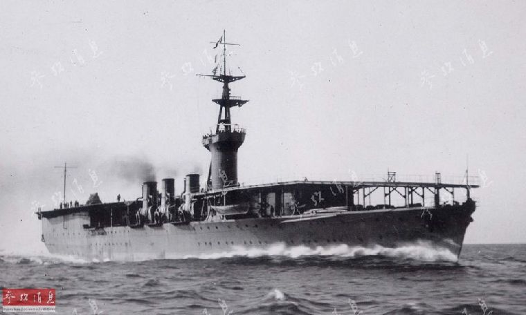 當時的日本海軍一直“師從”英國海軍,但與“導師”不同,日本雖也受大艦巨炮思想影響,但其於1922年12月建成了世界上第一艘真正意義上的航母“鳳翔”號(並非最早開工建造,但是最早建成的),並且在太平洋戰爭爆發前就已於1939年將包括“蒼龍”號、“飛龍”號在內的專用航母投入實戰,在航母實戰領域起步較早。圖為1922年,正在進行海試的鳳翔號航母。