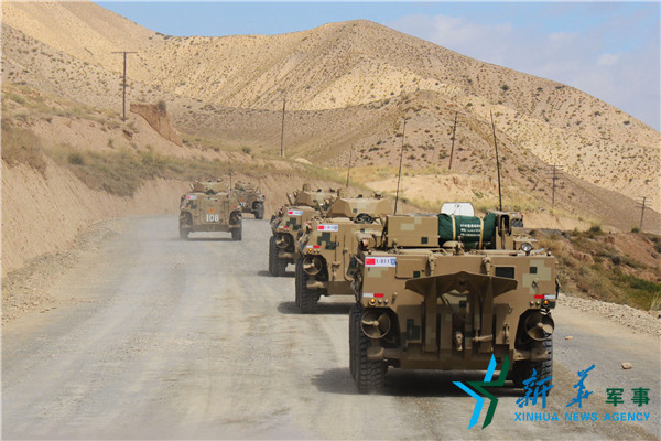 9月13日,我地面參演部隊採取摩托化機動方式,於9月12日從新疆阿圖什市出發,經吐爾尕特邊境口岸出境,行程共約510公里,於9月13日抵達演習地域。新華社記者王德思 攝