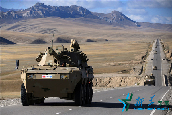 9月13日,我地面參演部隊採取摩托化機動方式,於9月12日從新疆阿圖什市出發,經吐爾尕特邊境口岸出境,行程共約510公里,9月13日抵達演習地域。新華社發 王寧 攝