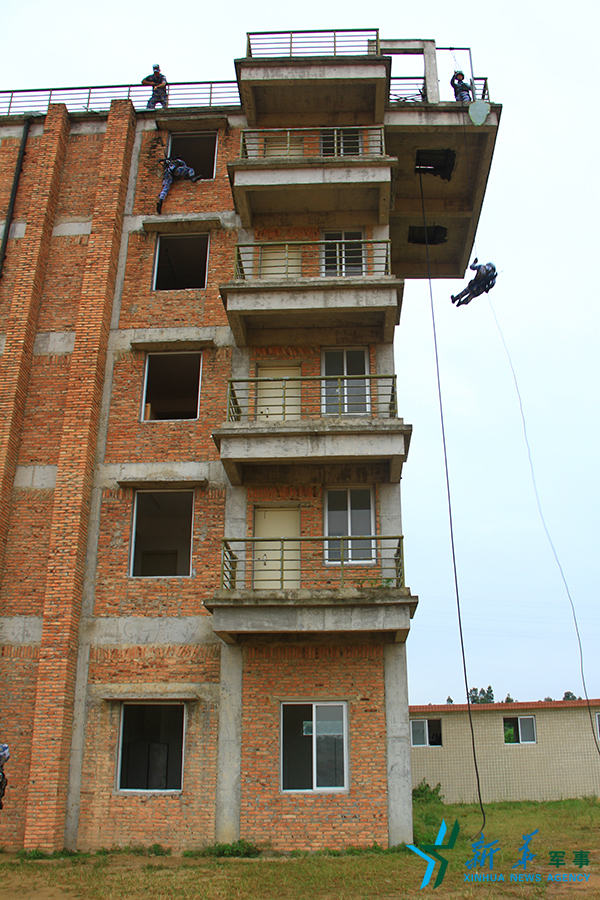 女子特戰隊員展示攀登和索降科目。李朋芳 攝