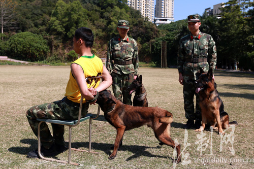 圖為警犬迅速咬斷繩索解救人質 陸才興攝