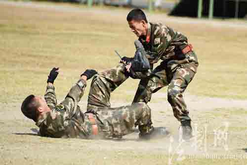 “科學的説法就是運用杠桿原理、打擊要害部位,通俗説法就是四兩撥千斤!”身高不過168cm、體重不足60公斤的第四年兵左俊笑起來還是張娃娃臉,但已經歷了20多次緝毒、緝私實戰考驗,特別是在2015年的一次破門緝毒行動中,他徒手抓捕了一名身高185cm以上、從某國特種部隊退伍的毒販。他介紹,當時使用的正是這套特種格鬥技能。(廖鍵)