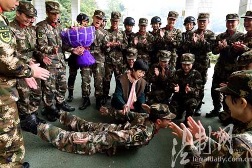 圖為陳偉紅與官兵分享防止運動傷害技巧