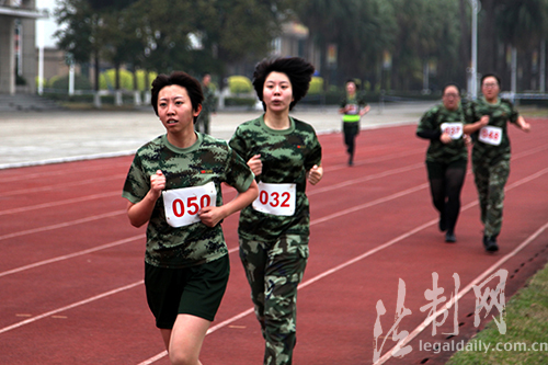圖為3000米長跑賽場上,女學員們正奮力衝向終點