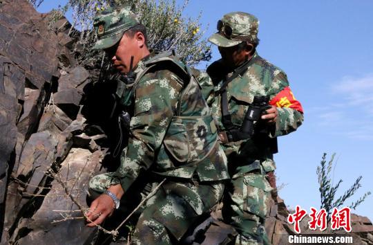 圖為邊防官兵與護邊員對邊境無人區地段巡邏踏查。 王友波 攝