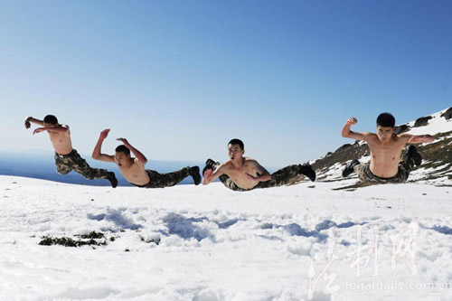 圖為“90後”邊防官兵長白山主峰雪中赤膊訓練