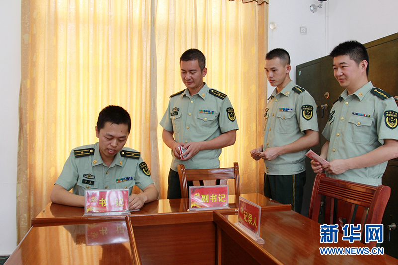 邊防官兵繳納黨費。梁鈞銘 攝
