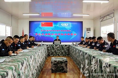 圖為中國第五支駐利比裏亞維和警察防暴隊召開專題會議,反復研究勤務方案,部署任務。