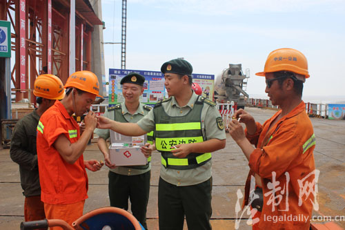 圖為龍港邊防派出所官兵為當地田間作業的農戶送去防暑藥品