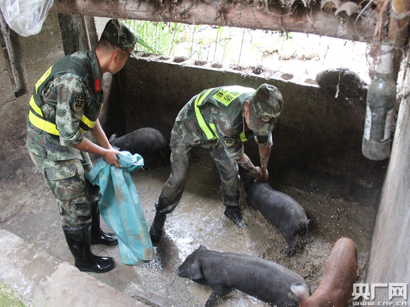 官兵幫助受災群眾轉移牲畜