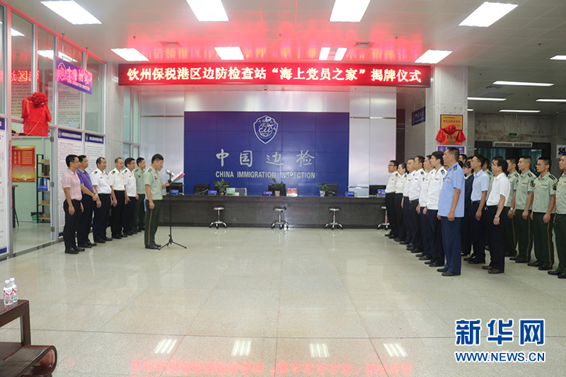 欽州保稅港區邊檢站舉行“海上黨員之家”揭牌。禤展弘 攝