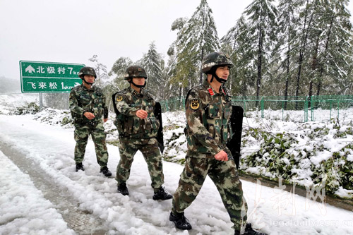 8月28日,位於祖國最北端的黑龍江省漠河縣北極村,迎來今年入秋的第一場雪,飛舞的雪花給神州北極披上了一層神秘的外紗,風景美不勝收。駐守在祖國最北端的黑龍江省邊防總隊大興安嶺地區邊防支隊北極邊防派出所組織官兵在轄區重點路段冒雪巡邏,守護游客安全“找北”。(褚福超)
