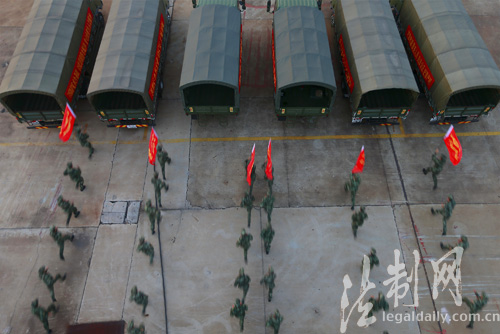 圖為江蘇邊防總隊後勤應急保障拉動演練隊員在緊急集結
