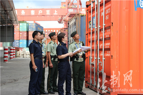 圖為邊檢官兵與海關執法人員對貨櫃進行核對