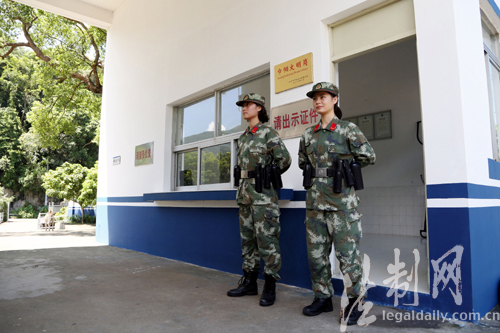 圖為深圳邊防支隊臨退伍女兵正在站哨
