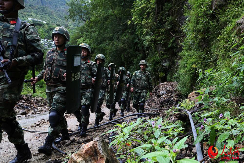 臨退伍老兵在巡邏中通過危險路段。黃恩 攝