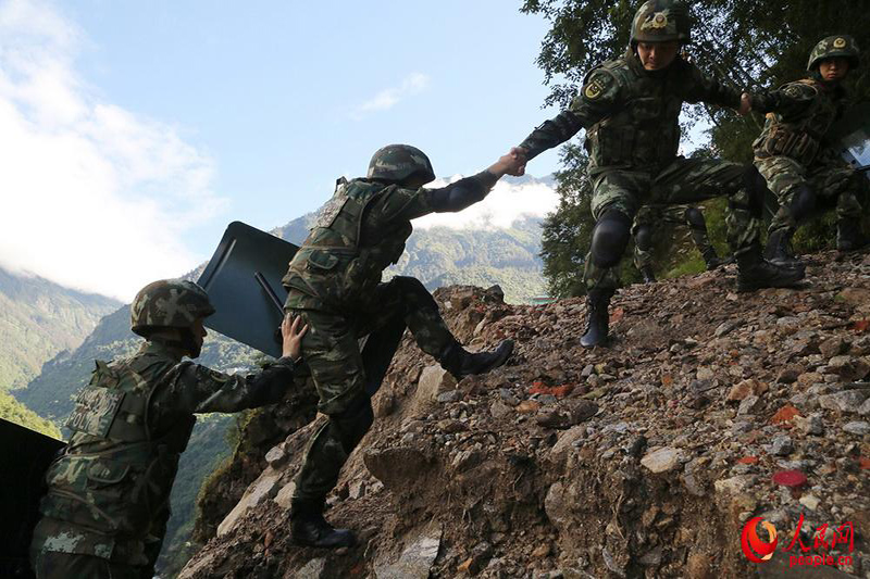 在巡邏中通過危險地段。黃恩 攝
