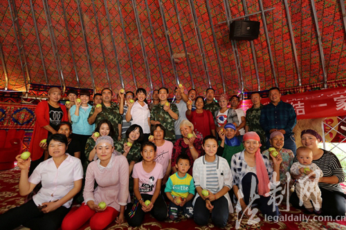 已是中午14時許,在民族親戚的邀請下,大家圍繞長桌,共吃一桌飯,以香甜的奶茶、熱情的歌舞表達情感,一段麥西萊普民族親戚與官兵們你來我往,掀起高潮,一曲激揚的民族風情歌曲,婉轉動聽,笑聲、掌聲,從小小的氈房傳出,濃濃的民族親情,不斷在寧靜的邊境小村中不斷蔓延。(周旭)