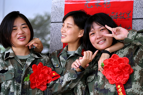 圖為退伍女兵合影留念